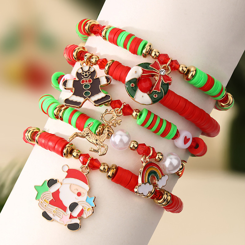 Christmas Beaded Bracelets Set – Red, Green White Holiday Bracelets with Joy, Merry Bright Letters for Women
