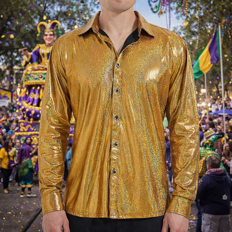 Mardi Gras 2026 Disco 1980s Blouse / Shirt Masquerade Disco Solid Color Fancy Dress Men's Carnival Costume Halloween Carnival Masquerade Party / Evening Pride Parade Pride Month Adults' Shirt