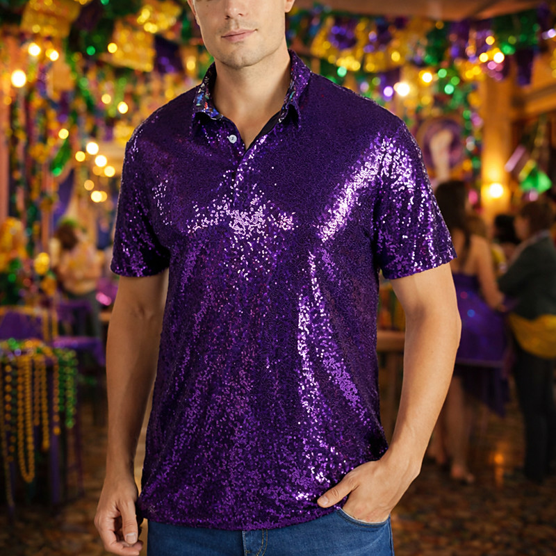 Mardi Gras 2026 Retro Vintage 1970s T-shirt Polo Short Sleeves Disco Sequins Fancy Dress Men's Halloween Carnival Music Festival Pride Parade Pride Month Adults' T-shirt Spring Summer