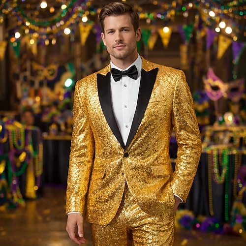 Mardi Gras 2026 Retro Vintage 1980er Smoking Anzüge Blazer Disco Pailletten Schmale Passform Kostüm Herren Karnevalskostüm Weihnachten Halloween Karneval Pride Parade Pride-Monat Erwachsene Mantel