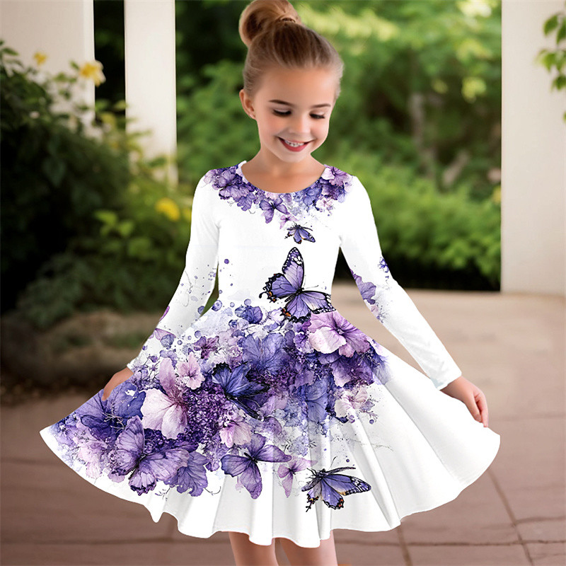 Girls' 3D Butterfly Dress Long Sleeve 3D Print Spring Fall Sports Outdoor Daily Holiday Cute Casual Beautiful Kids 3-12 Years Casual Dress A Line Dress Above Knee Polyester Regular Fit