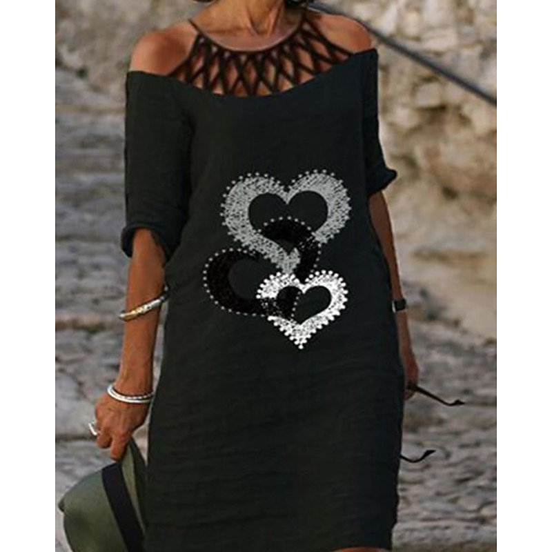 Women's Mini Dress Casual Dress Shift Dress Print Dress Fashion Modern Daily Outdoor Vacation Regular Fit Floral Geometric Butterfly Half Sleeve Crew Neck Dusty pink Black White Yellow Summer Fall