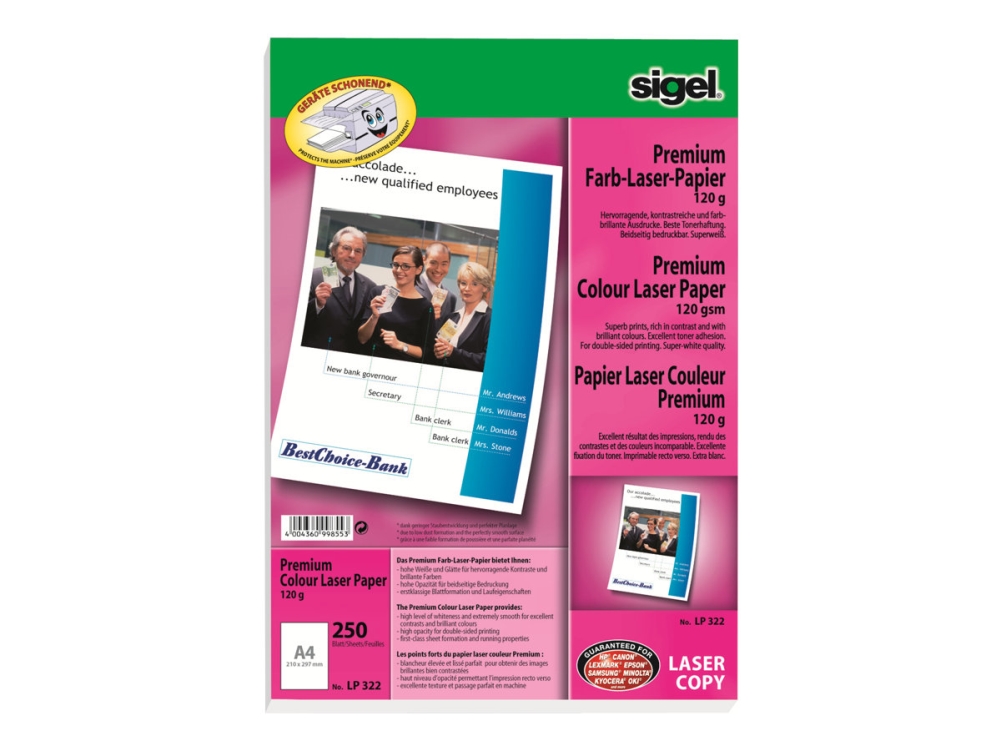 Sigel Premium Quality Paper for Colour Laser/Copier LP322 - Matt - A4 (210 x 297 mm) - 120 g/m² - 250 ark papir