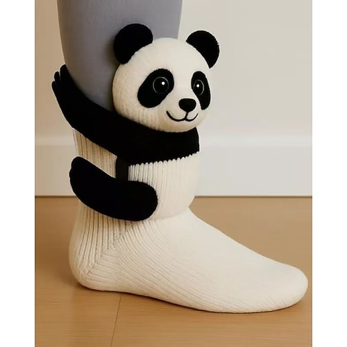 Calzini natalizi in maglia 3D con animali / calzini divertenti natalizi / calzini invernali in cotone / calzini da ciclismo termici caldi antivento 1 paio in poliestere con animali bianco giallo rosa taglia unica