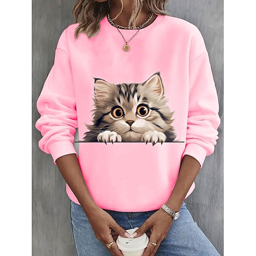 Per donna Pullover Grafico Animale Gatto Caldo Classico Casual Manica Lunga Girocollo Top Regolari Casuale Casa Streetwear Stampato Nero Bianco Rosa Kaki Primavera Autunno Inverno