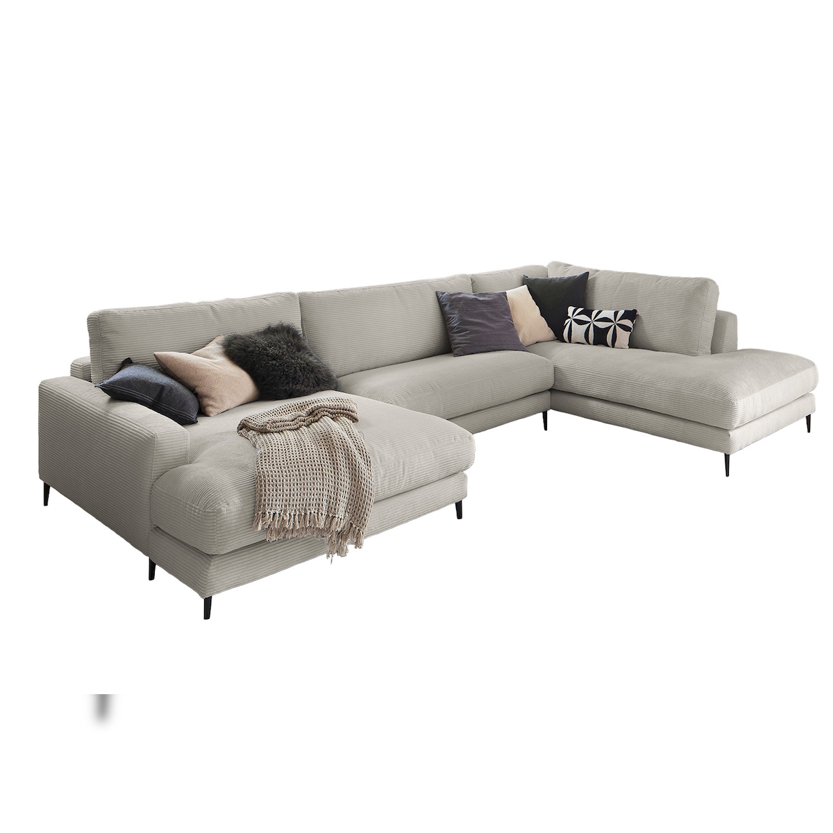 KAWOLA Sofa CARA Wohnlandschaft U-Form Cord steingrau Longchair links