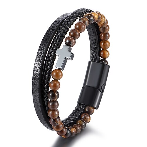 Bracciale da uomo con chiusura magnetica: design in pietra naturale e similpelle, elegante e resistente, perfetto per l'uso casual e quotidiano.