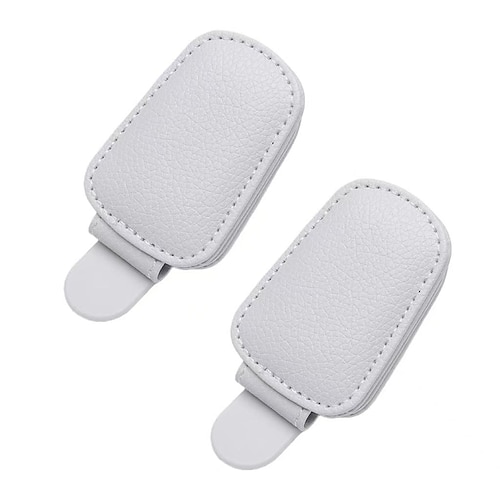 Portaocchiali parasole magnetico per auto in similpelle da 2 pezzi con slot per carte - design con funzionamento con una sola mano adatto per accessori interni lato conducente grigio clip nera