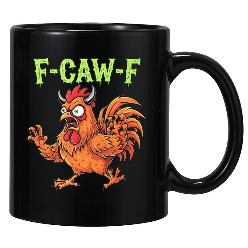 F-Caw-F Funny Chicken Mug Humorous Rooster Coffee Cup Gag Christmas Gift for Friends Family Ceramic Tea Mug Office Kitchen Birthday Christmas or Funny Gift Idea