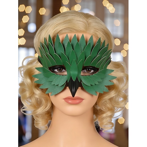 Maschera di carnevale veneziana in pelle verde piumata per donne - Accessorio costume ispirato agli uccelli con design a strati 3D per Carnevale veneziano e feste in maschera