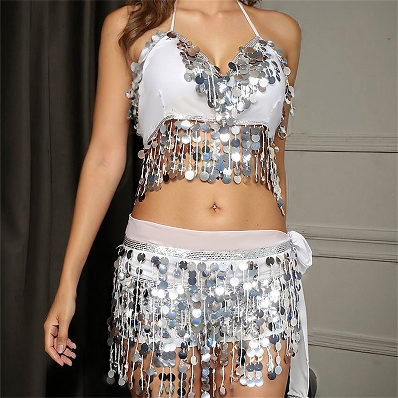 Karneval 2026 Rio Karneval Samba Tanzbekleidung Bauchtanzrock mit Crop Top Pailletten Quasten Röcke Set Rave Tanz BH Oberteil Party Kostüm Outfits Brasilien Festival Performance Kostüm