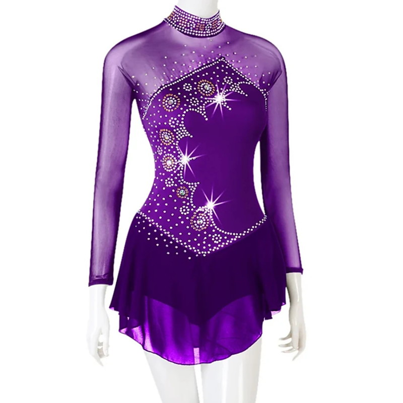 Figure Skating Dress Women's Girls' Ice Skating Dress Purple High Elasticity Training Competition Skating Wear Classic Crystal / Rhinestone Long Sleeve Ice Skating Figure Skating