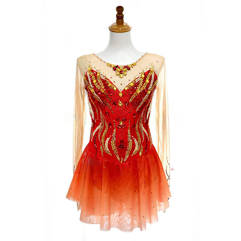 Figure Skating Dress Women's Girls' Ice Skating Dress Red High Elasticity Training Competition Skating Wear Classic Crystal / Rhinestone Long Sleeve Ice Skating Figure Skating