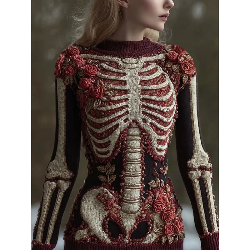 Women's Sweater Skeleton Cute Streetwear Casual Graphic Skeleton Crew Neck Patchwork Knitted Long Sleeve Regular Tops KnitRed Orange Fall Winter