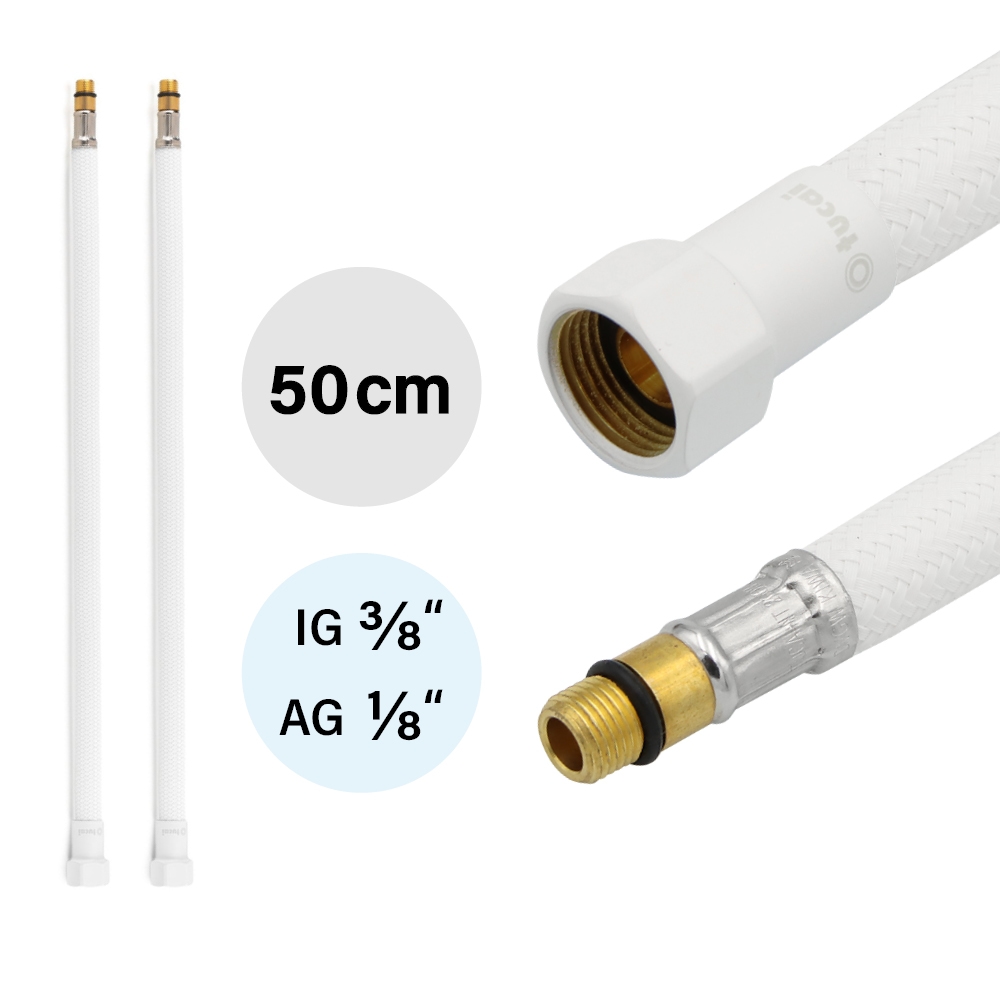 2x Flexschlauch DN8 IG 3/8`-M10x1 Weiss & Weiss Matt 500 mm
