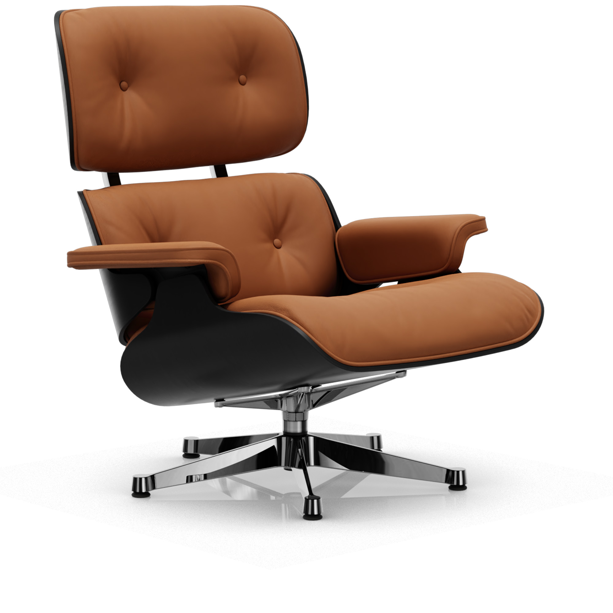 Vitra - Eames Lounge Chair Black Chestnut Leather Premium Cognac 97 Polished Aluminium - Fåtöljer - Charles & Ray Eames - Läder/Metall/Trä