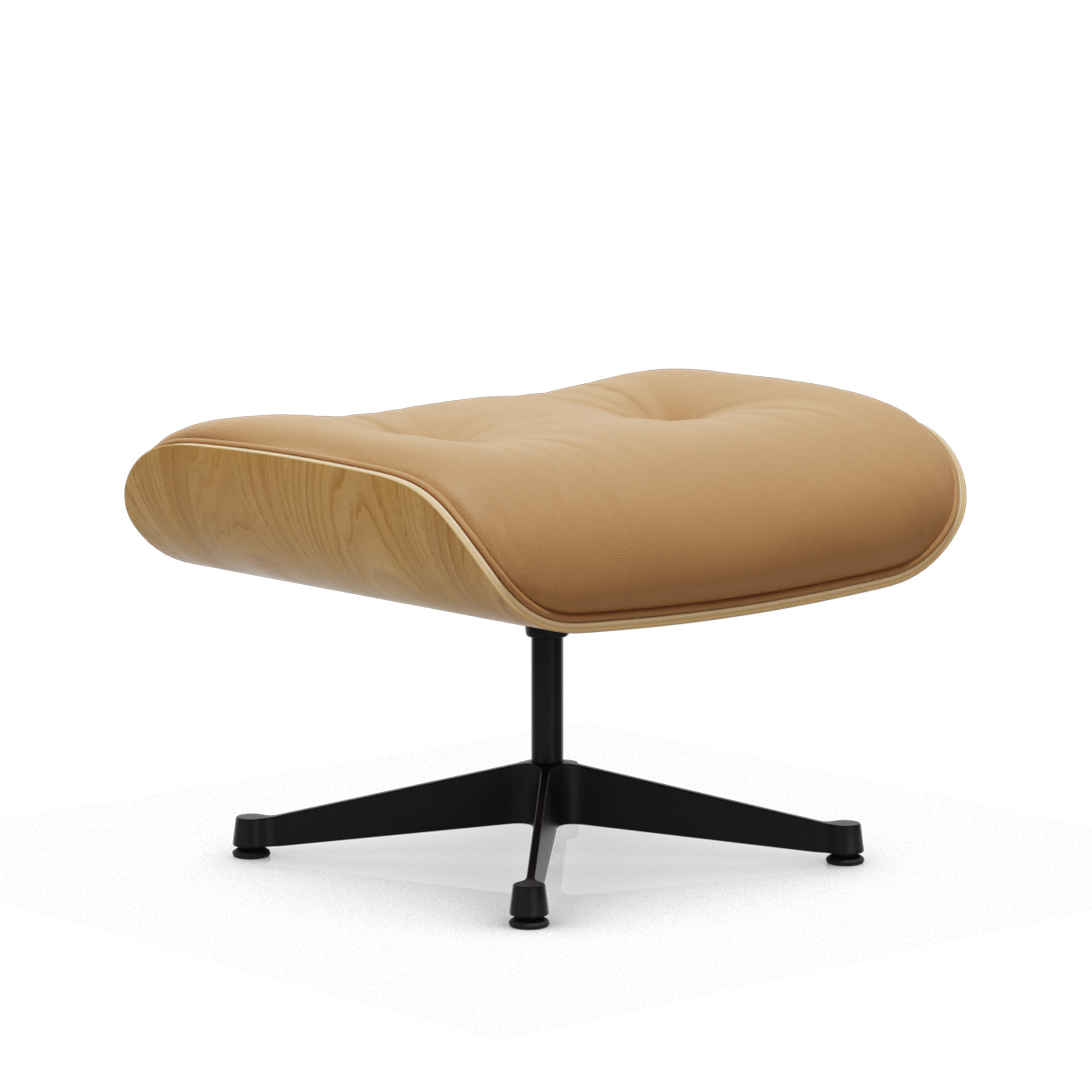 Vitra - Eames Lounge Ottoman Natural Chestnut Leather Natural Caramel 01 Deep Black - Fotpallar - Charles & Ray Eames - Läder/Metall/Trä