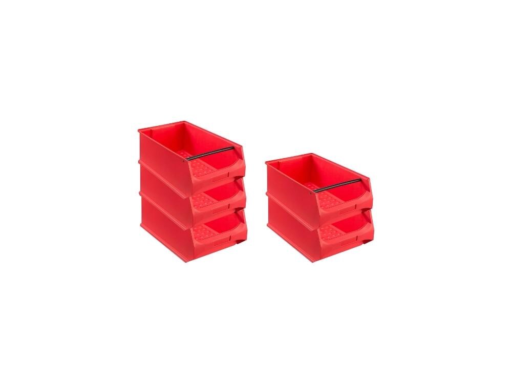 PROREGAL 5x Rote Sichtlagerbox 5.1 mit Griffstange | HxBxT 20x30x50cm | 21,8 Liter | Sichtlagerbehälter, Sichtlagerkasten