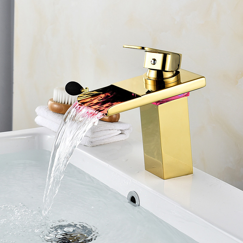 Bathroom Sink Faucet with Supply Hose,LED Waterfall Spout Single Handle Single Hole Vessel Lavatory Faucet,Slanted Body Basin Mixer Tap