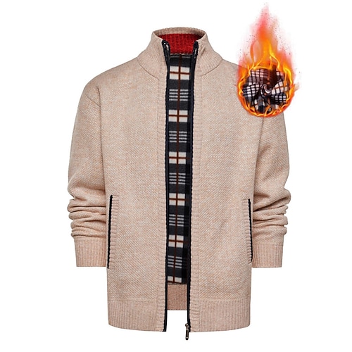 Per uomo Felpa Cardigan Maglione con Zip A Coste Maglia Top Regolari Lavorato a maglia Tinta unica Collo Alto Neutro Moda Casuale Abbigliamento quotidiano Abbigliamento Autunno Inverno Nero Borgogna