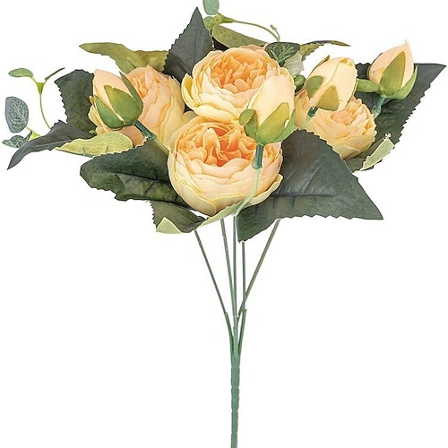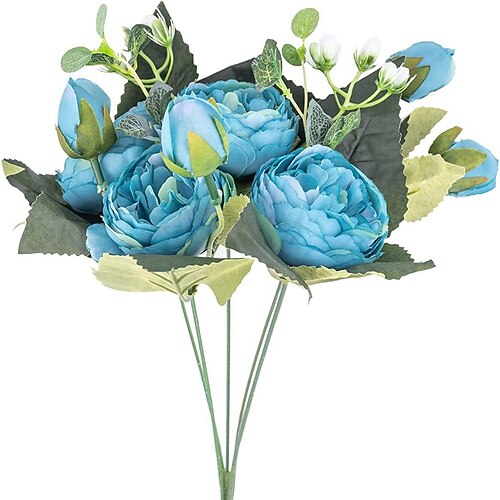 1 bouquet di rose persiane artificiali, rose di seta a 5 teste con 9 fiori, composizione floreale finta per matrimoni, feste, decorazioni per la casa