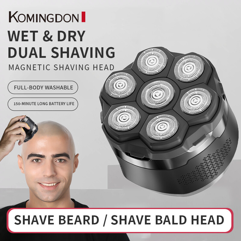 Komingdon [Electric Bald Clipper] Cordless 6D Men's Electric Bald Head Clipper with LED Display - 6 Floating Blades, Rechargeable, Perfect for Short Hair & Travel bule