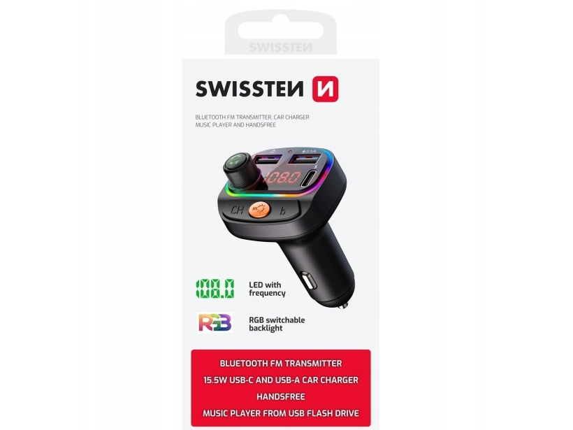 Swissten RGB Bluetooth FM Transmitteris 2x USB / USB-C 20114031