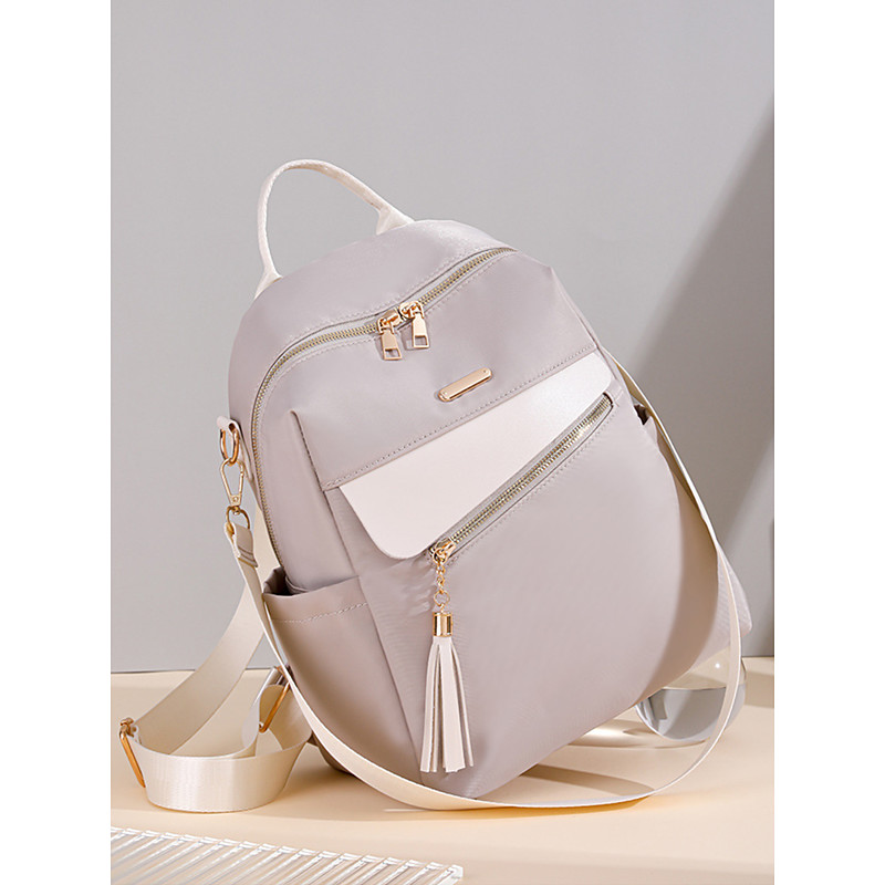 Women's large capacity water-resistant backpack - can be carried on one shoulder, stylish tassel details, zipper closure, suitable for work, school and daily use