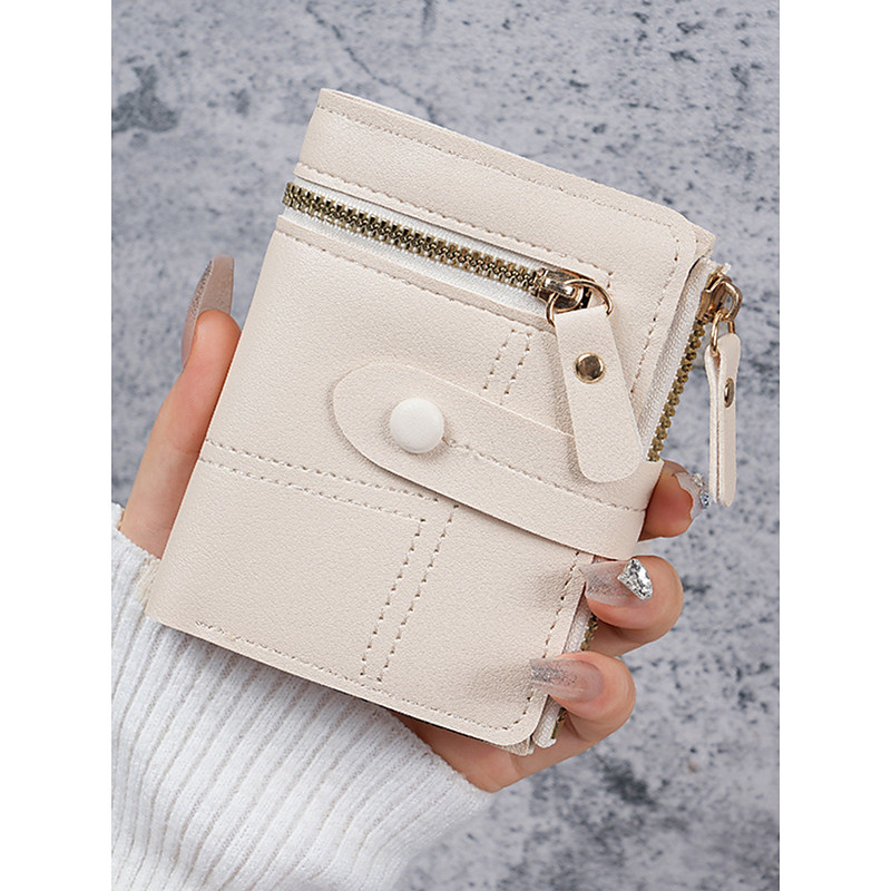 Folding Mini Wallet Japanese Style Litchi Texture Women Card Holder Coin Purse Compact Small Wallet for Students Stylish and Practical Everyday Use