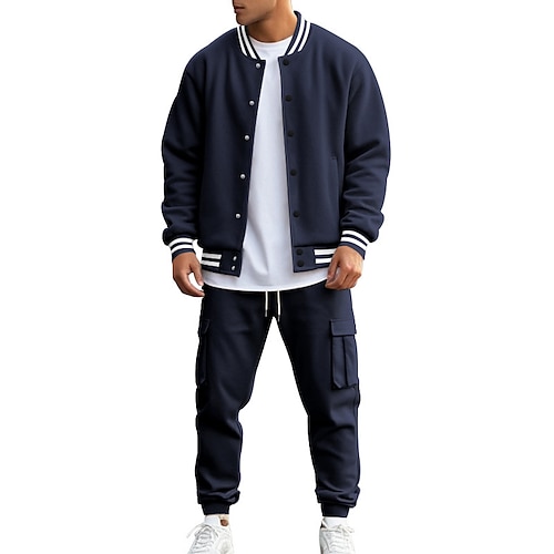 Per uomo Maglia Tuta da Ginnastica Set di abiti Collo alla coreana All'aperto Quotidiano Sportivo Coulisse Tasca A righe Nero Rosso Blu marino Poliestere Abbigliamento sportivo Moda Streetwear