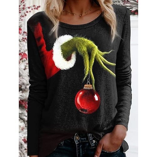 Maglietta donna Natale con grafica vintage moda stilosa maniche lunghe collo giro collo rotondo top regolari stampa quotidiana fine settimana nera rosa estate primavera autunno inverno