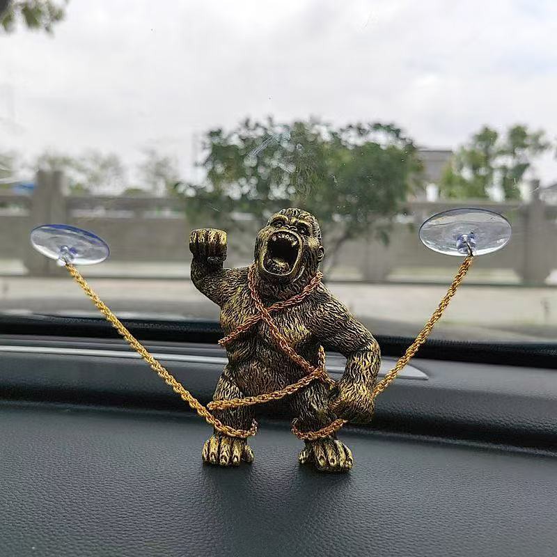 Resin Gorilla Car Dashboard Decor, Powerful Bound Ape Figurine, Bold and Fierce Resin Gorilla Statue, Artistic Animal Sculpture for Home or Office Display