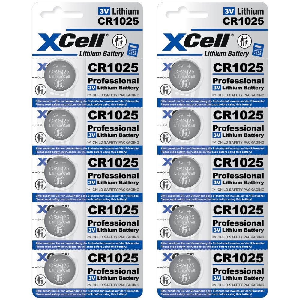 10x CR1025 XCell Lithium-Knopfzelle 3V/25mAh (2x 5er Pack)