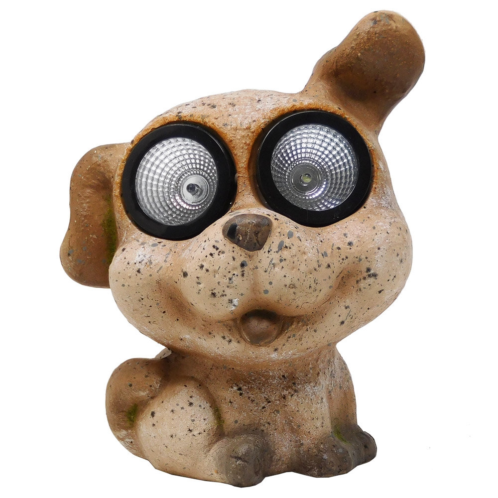 Gartenfigur Hund 2 LEDs Dämmerungssensor Steinoptik Keramik H 20 cm