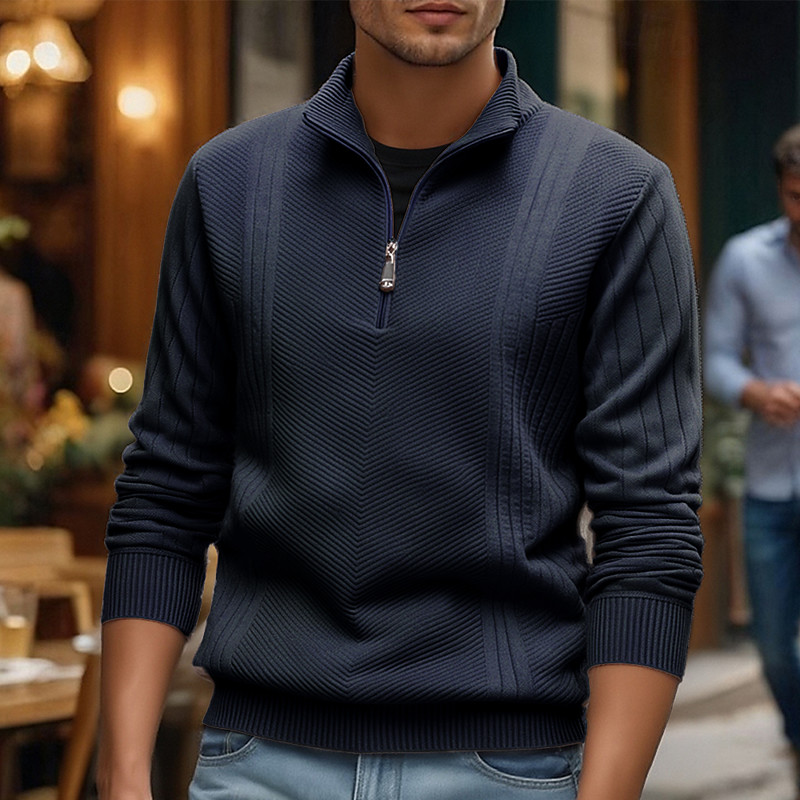 Men's Pullover Sweater Jumper Quarter Zip Sweaters Knit Sweater Ribbed Knit Regular Tops Knitted Plain Stand Collar Fashion Casual Vacation Daily Wear Clothing Apparel Fall Winter Black Navy Blue S M