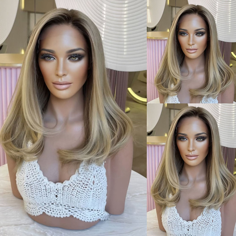 Brazilian virgin Hair Glueless Honey Blonde 5x5 Closure Wigs Ombre Highlighted Hair13x4 Lace Front Wig Pre-Plucked