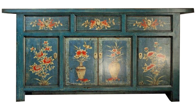 OPIUM OUTLET Möbel Kommode Schrank Sideboard Hochzeitsschrank 34372-1 blau asiatisch chinesisch orientalisch