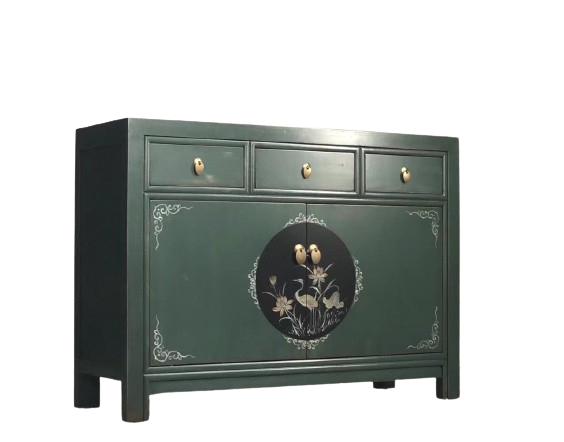 OPIUM OUTLET Möbel Kommode Schrank Sideboard Hochzeitsschrank 33082-3 tannengrün asiatisch chinesisch orientalisch Holz