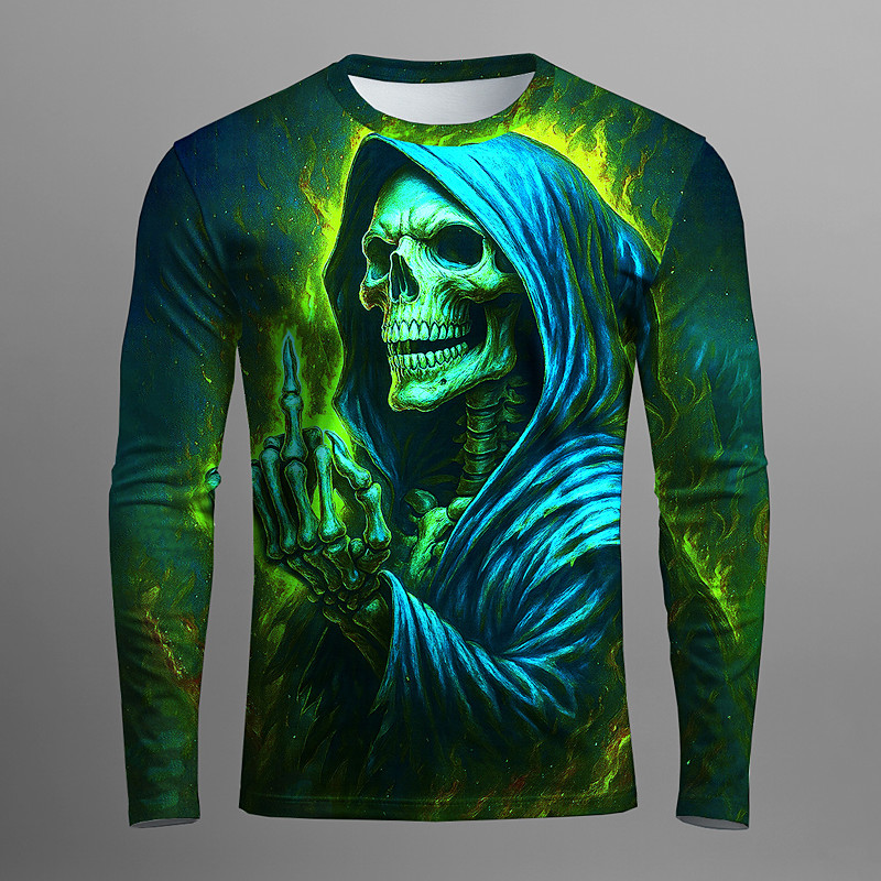 Men's Grim Reaper 3D T Shirt Long Sleeve T shirt 3D Print Crew Neck Shirt Fashion Exaggerated Street Casual Daily Purple Green Gray Summer Spring Fall Clothing Apparel S M L XL XXL XXXL