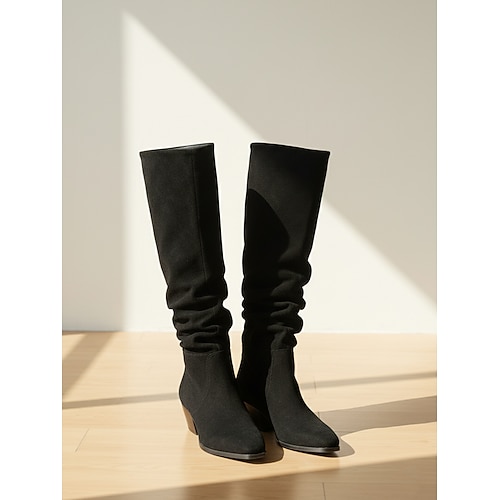 stivali da donna in pelle scamosciata a metà polpaccio con tacco a blocco - elegante design morbido per la moda autunnale e invernale