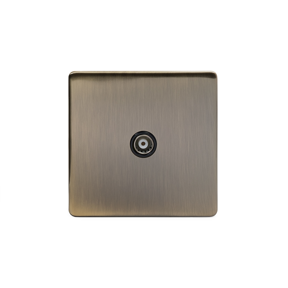 Soho Lighting Antique Brass TV Coaxial Aerial Socket Black Ins Screwless - Size: 86mm x 86mm x 4.5mm