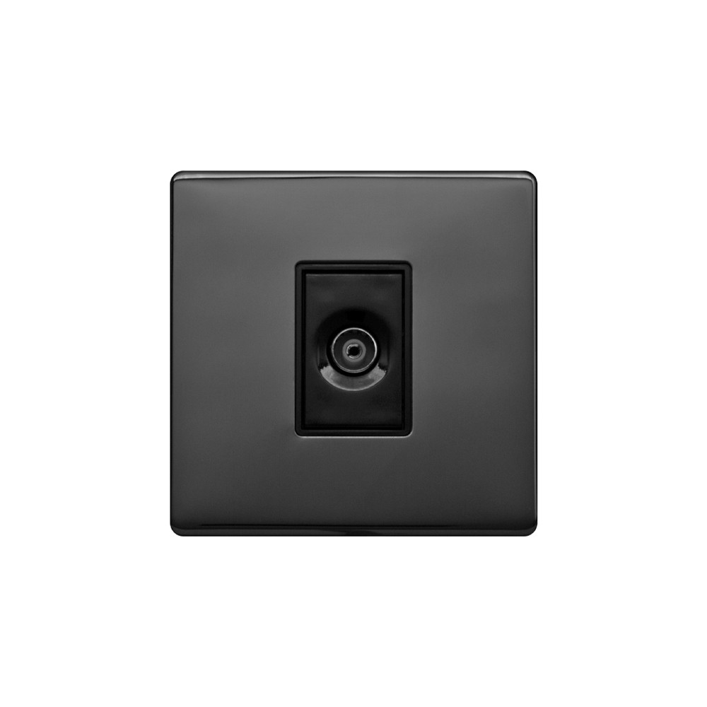 Lieber Black Nickel 1 Gang TV Aerial Socket - Black Insert Screwless - Size: 86mm x 86mm x 2.4 mm