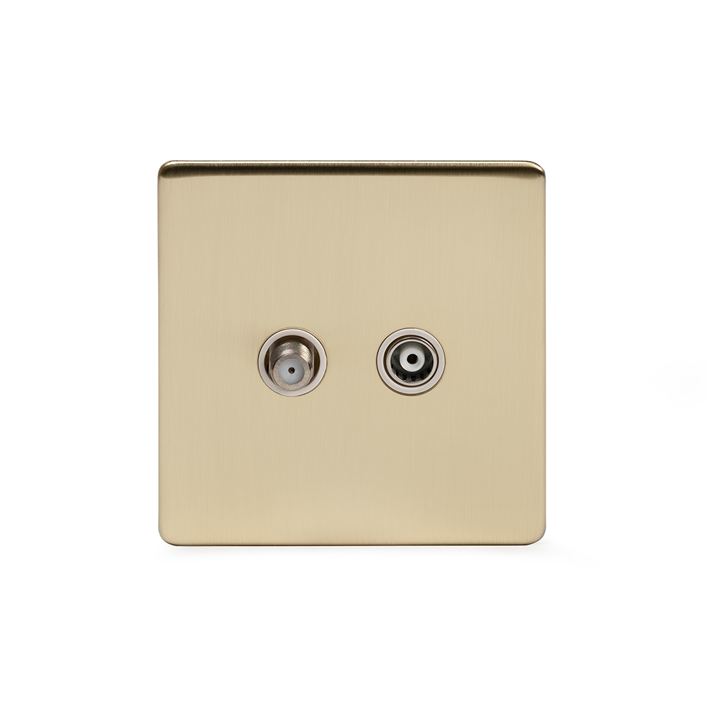 Soho Lighting Brushed Brass TV+ Satellite Socket Wht Ins Screwless