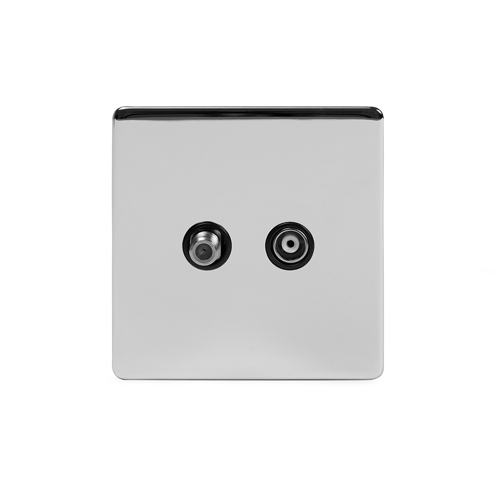 Soho Lighting Polished Chrome TV+ Satellite Socket Blk Ins Screwless