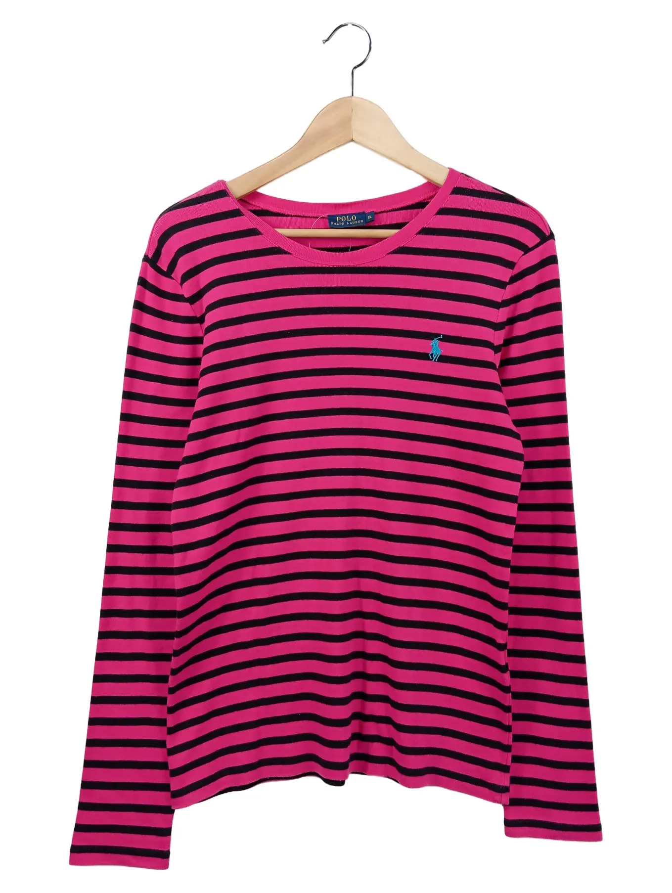 POLO RALPH LAUREN Damen Langarmshirt L Gestreift Pink/Schwarz