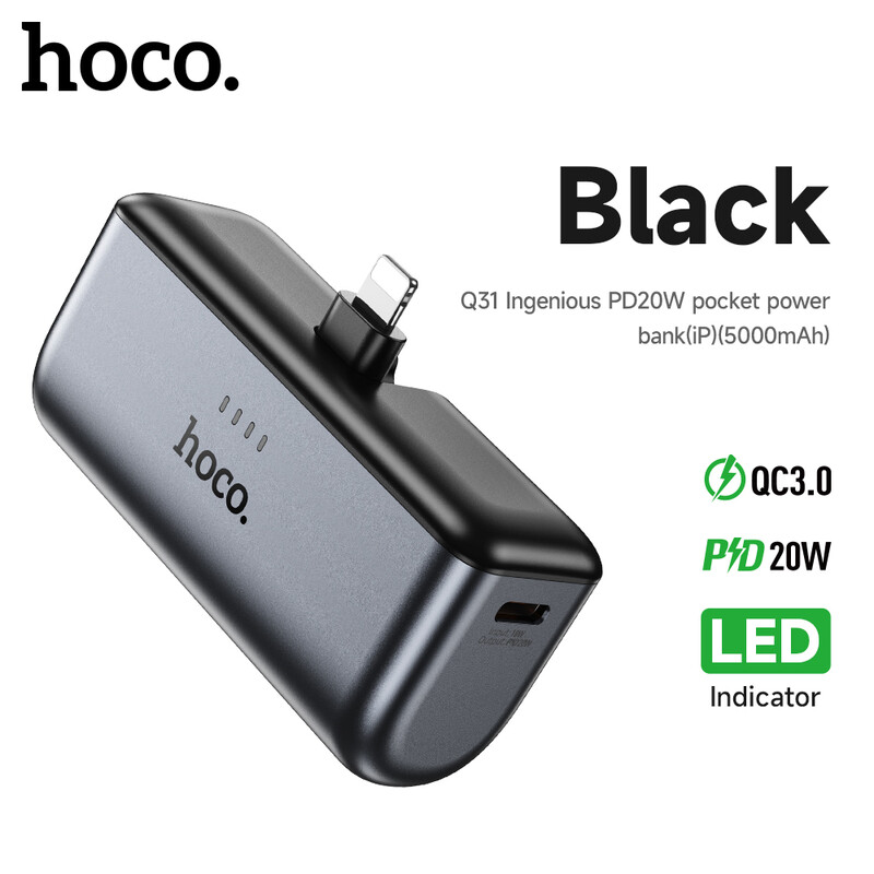 HOCO 5000mAh Pocket Power Bank - Lightning/ USB-C - Black