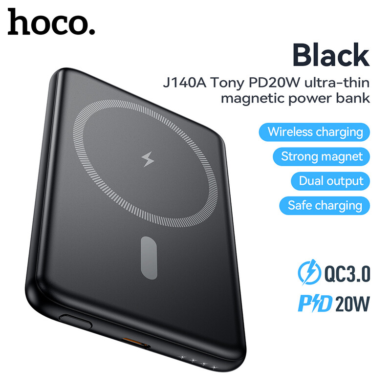 HOCO J140A PD20W 5000mAh Magnetic Power Bank - Black