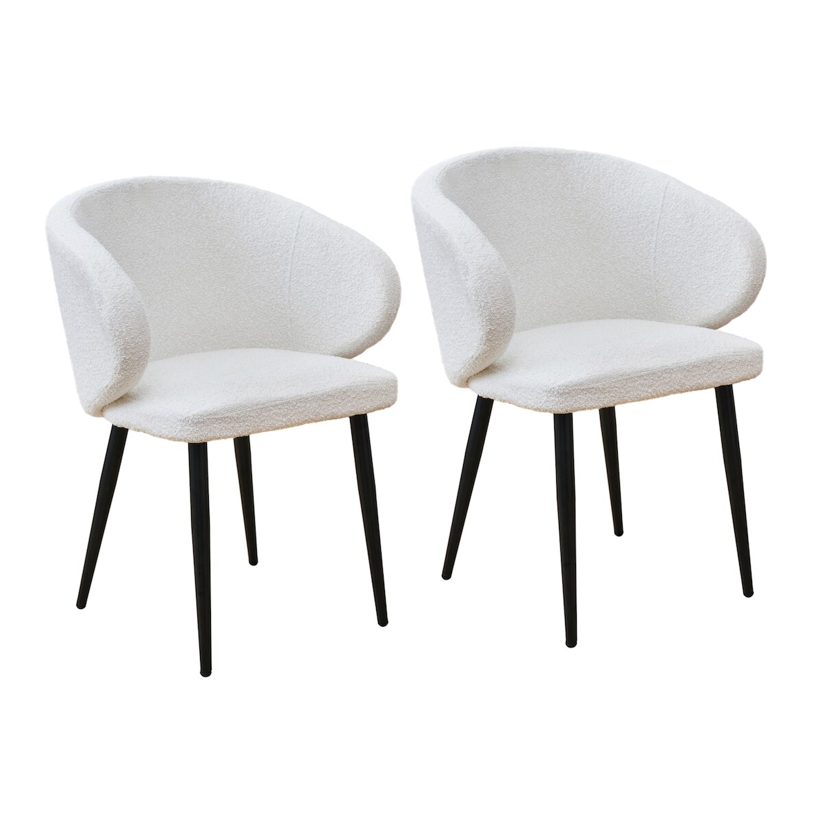 SVITA AUDREY 2er Set Esszimmerstühle Küchen-Sessel mit Armlehne Teddybouclé Weiß