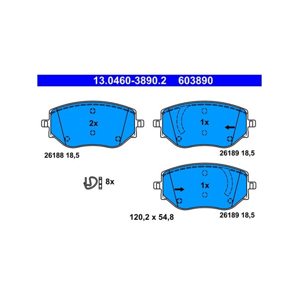 Jarrupalasarja, levyjarru, Etuakseli Ate 13.0460-3890.2 - dacia jogger, logan iii, sandero iii, renault clio v - OE 41 06 088 85R