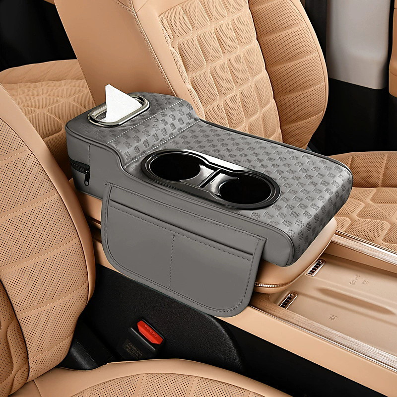 Car Armrest Box Heightening Cushion With Cup Holder Tissue Box Side Storage Pocket For Auto Interior Arm Rest Cover Height Pad